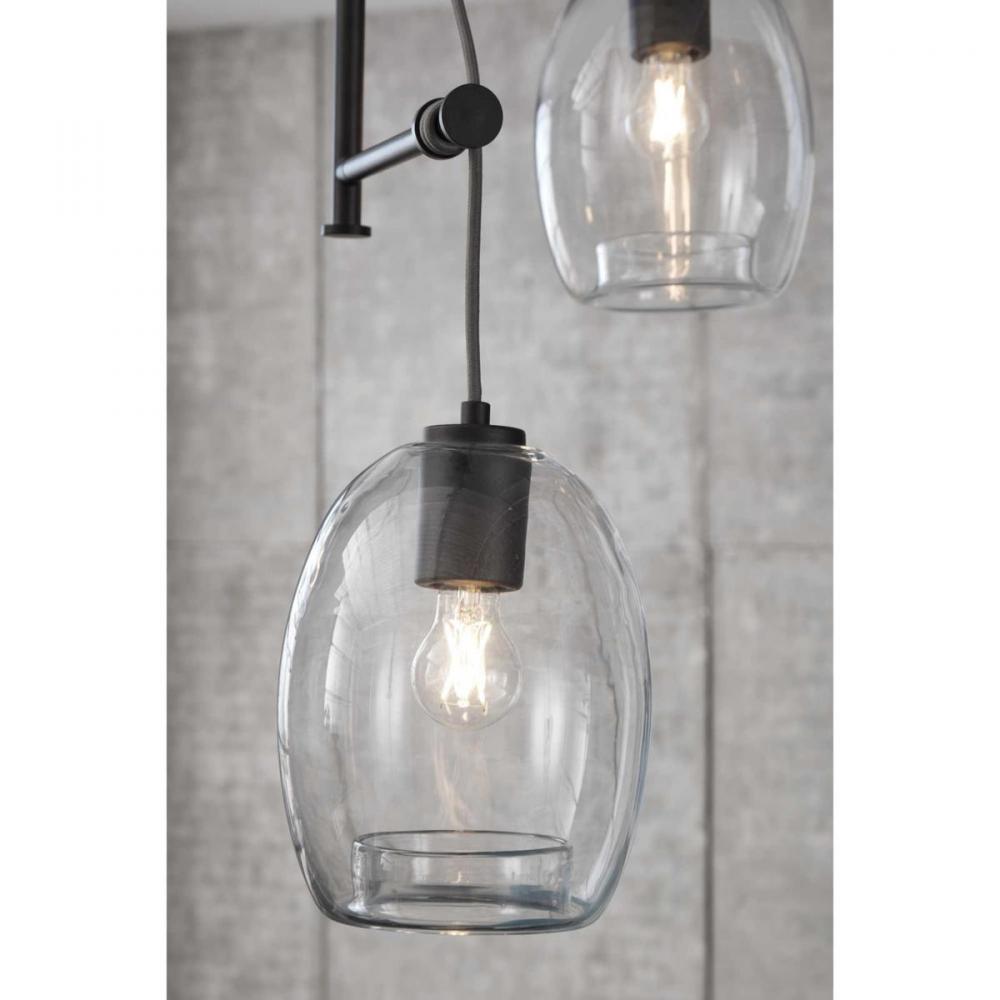 Infuse Your Home With The Subtle Industrial Flair Of This Three-Light Pendant. Inspired By The Outstanding Architecture Of Suspension Bridges, The Light Fixture Features Fabric Cords That Attach To Beautiful Graphite Light Bases And A Smooth Round Ceiling Plate. Clear Glass Shades With Rolled Rims At Their Bottoms Add An Extra Touch Of Artisan Inspiration.