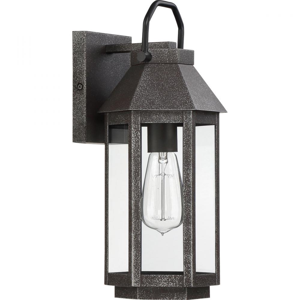 The Campbell family of lighting offers tasteful texture in post and wall lantern options. Its speckled black finish creates a refined interpretation of storm-weathered lanterns. Clear glass panels keep the look clean and sharp while casting ample light. St