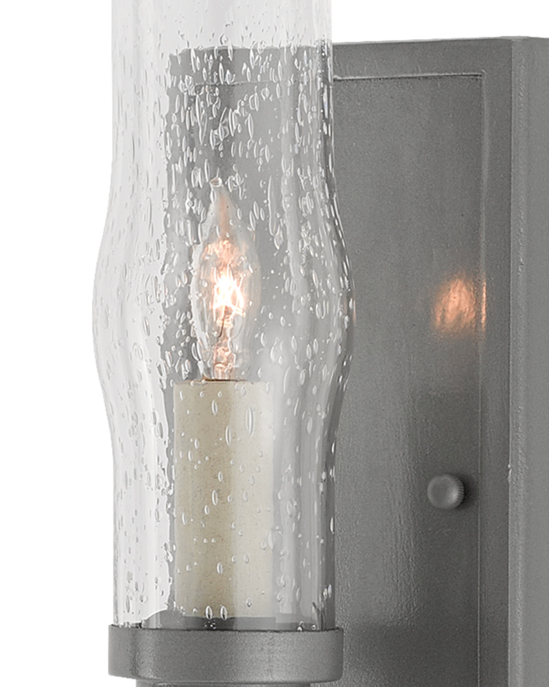 Made of wrought iron in a mix of contemporary gold leaf and painted gold finishes, our Canaletto Wall Sconce has a painterly patina that gleams brightly when the lights are switched on. Graduating from a large vessel of light at the bottom to the smallest basin on top, each receptacle of illumination effervesces the vessel above it to culminate in light washing the wall beautifully. This sconce, which is certified for damp locations, creates a lovely warm glow.