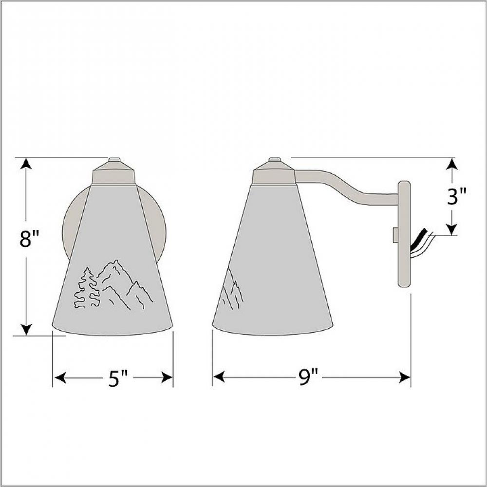 Country style Exterior Wall LIghts handmade in USA by Avalanche Ranch Lighting. This light features our exclusive metal wildlife art of a Trees. This Outdoor Wall Light is ideal for anyone looking to add rustic character or unique log home lighting to their home. Dimensions (inches): 8h x 5w and Takes 1 - Type A19 bulb - 60W max.