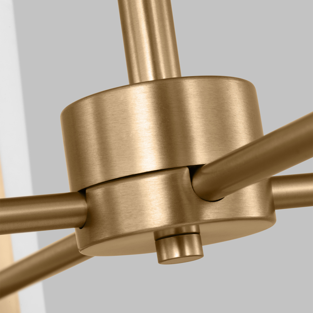 Sleek and modern, this contemporary collection features cylindrical linen shades and a visible flat spine for a clean look. It features a candelabra-style fixture with four sleek arms referencing mid-century modern design. On the end of each arm, frosted glass shades direct soft light in both directions.