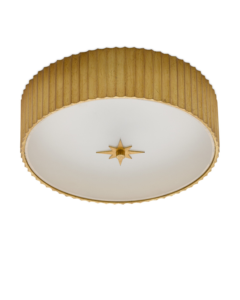 The Caravel Flush Mount is a classic flush-mount design made of composite with a gold leaf finish. We've fitted the Caravel with a frosted glass diffuser, which will soften the light wafting from the integrated LED bulbs.