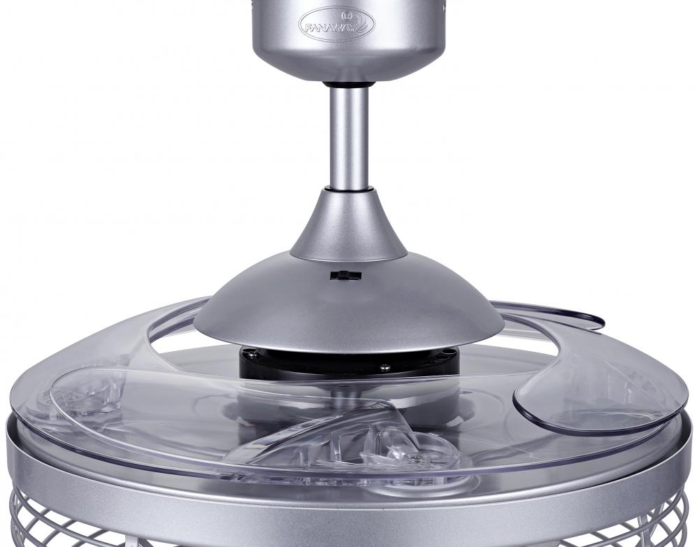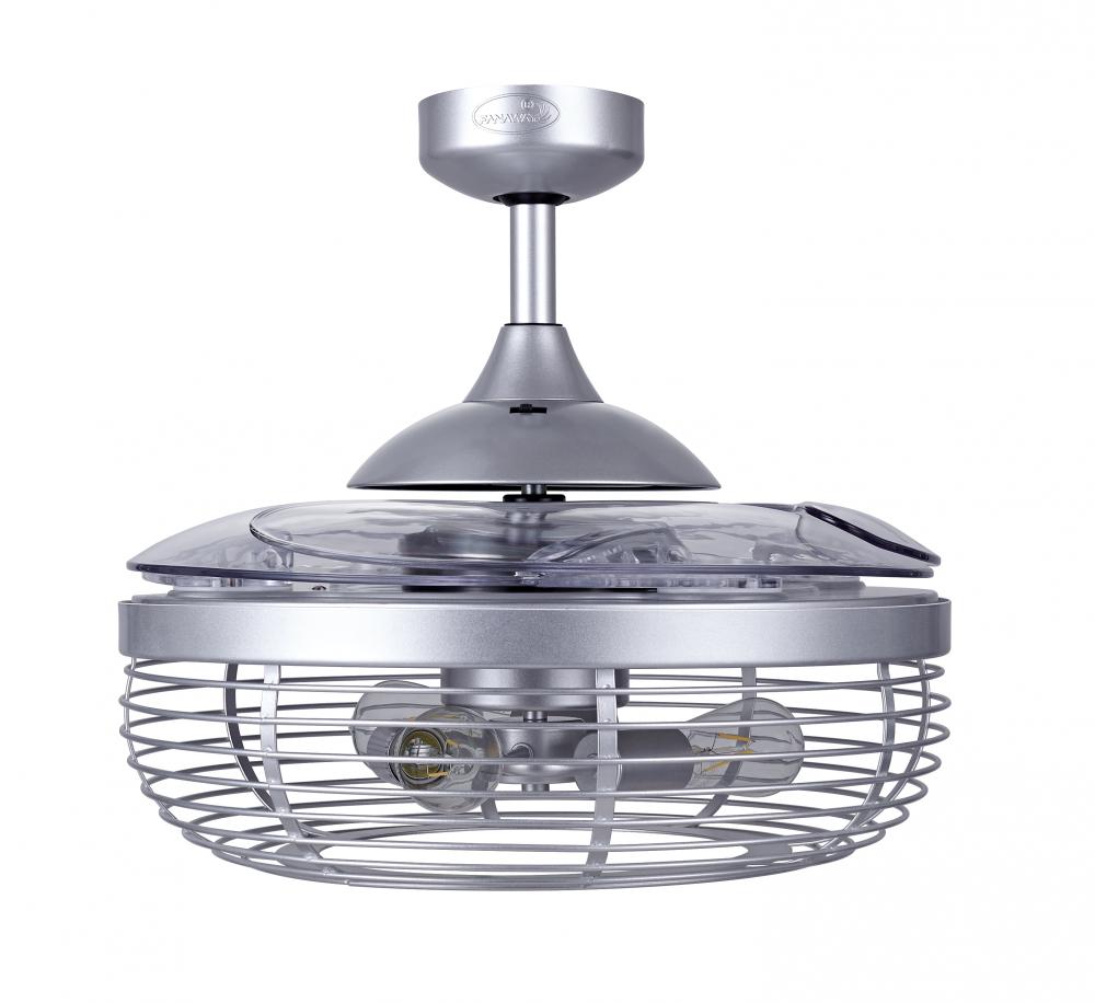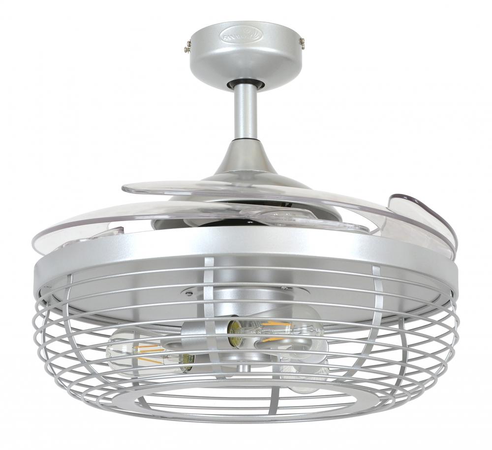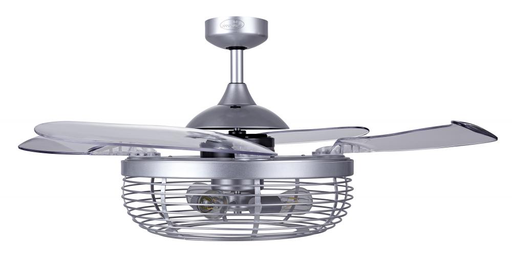The Australian Original FANAWAY Carbondale in Gray Silver with Clear Blades is a patented, advanced ceiling fan with unique aesthetics and energy-efficient design. Switched off, the traditionally intrusive fan blades automatically retract and conceal, transforming the unit into a modern industrial pendant. It creates open space in the room environment, accumulates less dust, and is unobtrusive and versatile to visually integrate into all rooms of your home. The fan comes with 3 dimmable LED vintage bulbs, 3-speed remote control, winter/summer mode, and a wall-mount for you to personalize your experience. The star of this Fanaway design is the light kit which has a hand-crafted industrial cage. The 3 dimmable vintage LED bulbs complete the industrial modern feel and are sure to add that designer look to any room in your home. Additional downrods lengths sold separately: 12", 18", 24" and 36" - 51105112, 51105118, 51105124, 51105136. US Patent 8317470, US Patent 8807938, US Patent 8790085, US Patent 9255584, US Patent 8851841. Set includes: One (1) ceiling fan with remote control Material: Metal (fan housing) and PC - Polycarbonate (blades) Finish: Gray Silver Ceiling fan dimensions: 17.13 inches high x 48 inches wide x 48 inches deep Blade dimensions: 17.7 inches length x 4.1 inches width; Blade color: Clear Summer/Winter mode: Yes Motor size (inch): D153 x 15 Airflow(CFM): 3208 Number of speed: 3 Power Consumption Average(wattage): 60 Motor Wattage: 60W Include 3X4.5Watt E26 Base ST19 LED Light Bulbs included; each bulb 2700K 360LM Socket: E26; Dimmable RPM H/M/L (motor speed): 223/163/122 Fan Watts when used at high speed: 60W Voltage: 110V This product will ship to you in one (1) box. Accessories pictured are NOT included. Assembly required.
