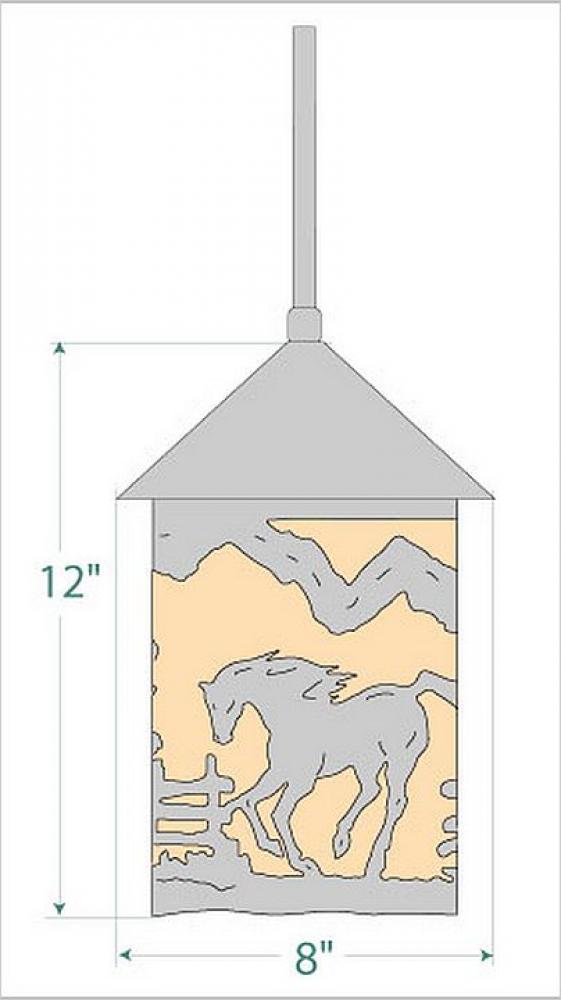 Equestrian style Hanging Pendant Lights handmade in USA by Avalanche Ranch Lighting. This light features our exclusive metal wildlife art of a Horse. This Pendant Light is ideal for anyone looking to add rustic character or unique log home lighting to their home. Dimensions (inches): 12h x 8w and Takes 1 - Type A21 bulb - 150W max.