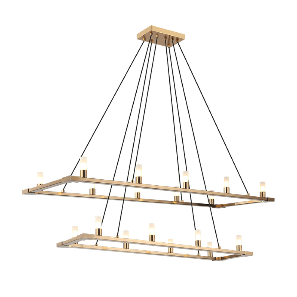 Need a statement piece – The Cascadian series will certainly deliver! Round and rectangular frames are both available and neither style will disappoint. Small glass shades line the Aged Gold Brass or Matte Black frame and are suspended by black fabric cords. Single layer and 2 two tier fixtures equally pack the WOW factor.