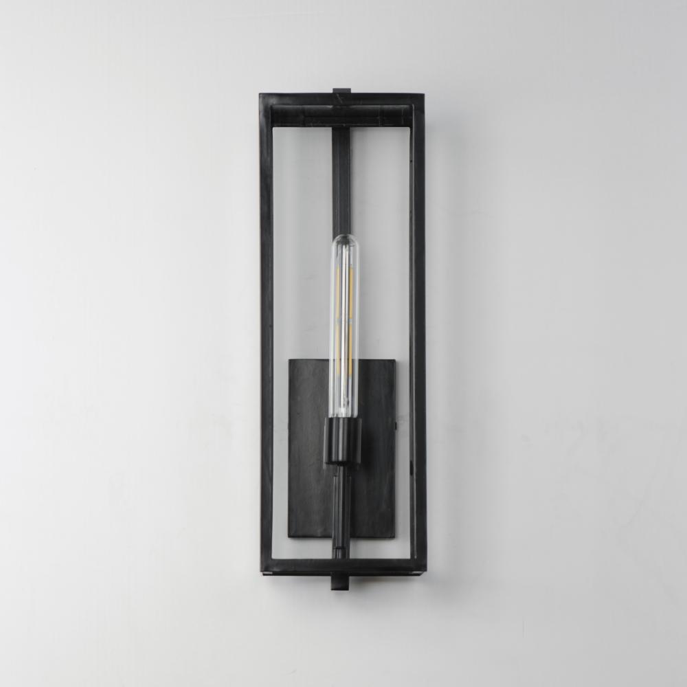 An elongated rectangular shaped design that is both minimalist and industrial. Die cast frames of Dark Bronze support Clear glass panels that provide an unobstructed view of the lantern's interior. Customize with your choice of lamps from vintage to tu