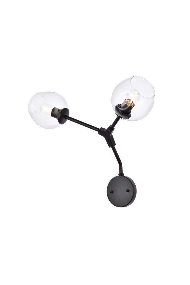 The daring Cavoli wall sconce in a brass finish is designed with 2 lights that connect at an angle, illuminating your rooms and ridding them of darkness. The winding paths end with a light encapsulated within a clear shade at each point. This contemporary blend of art and function results in this light that will shine beautifully in any space it adorns.