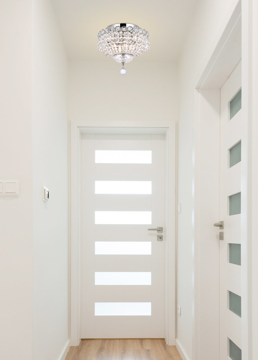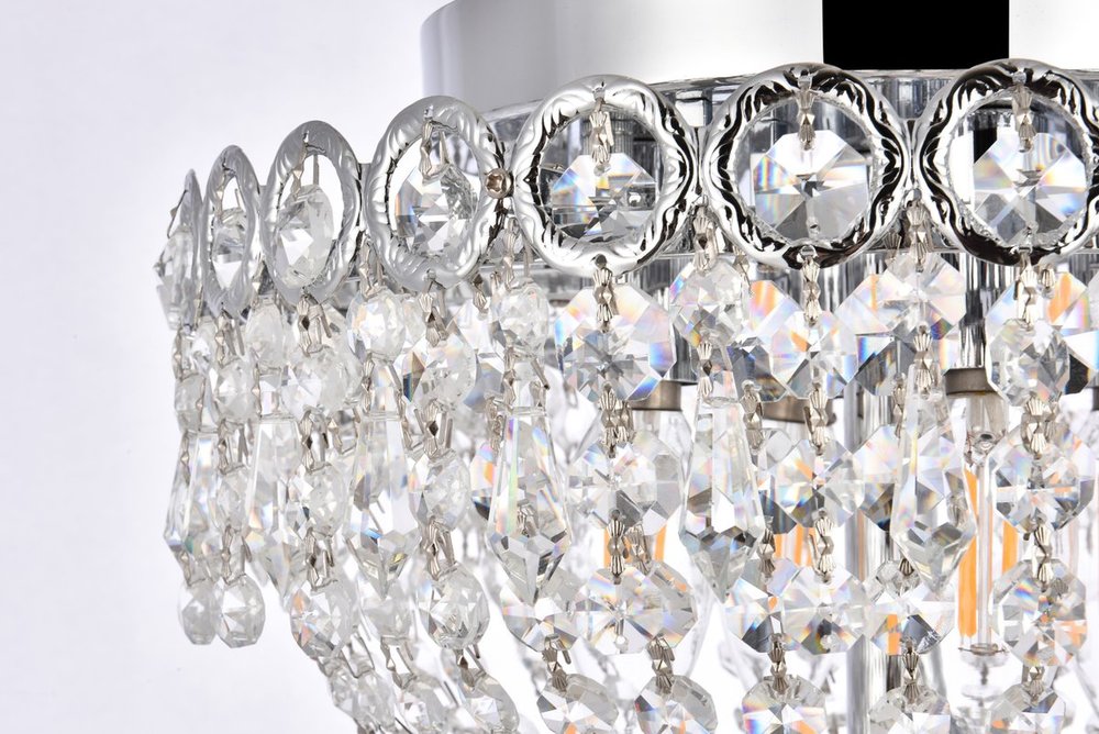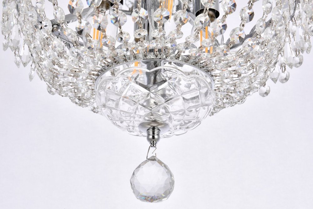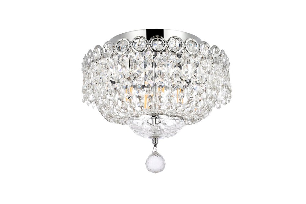 Century collection flush-mount fixtures, inspired by the classic elegance of 19th-century France, offer the versatility and adaptability to add splendor to many areas of your home. The light-refracting hemisphere designs abound in clear crystal octagons and prisms in a wide variety of trims. The candelabra bulbs give off the glowing hue of the frame, finished in gold or chrome.