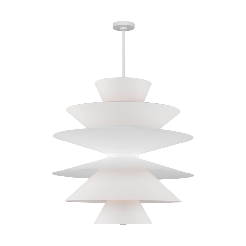 Chambord is comprised of layers of aluminum in varying sizes that direct the light down through a silk screen diffusor