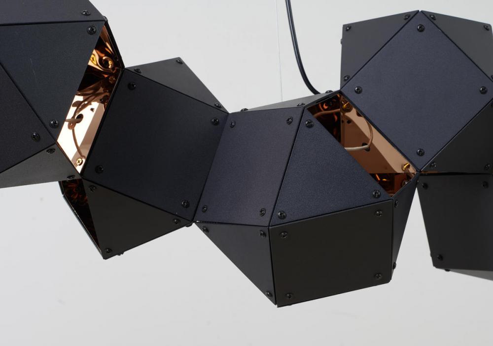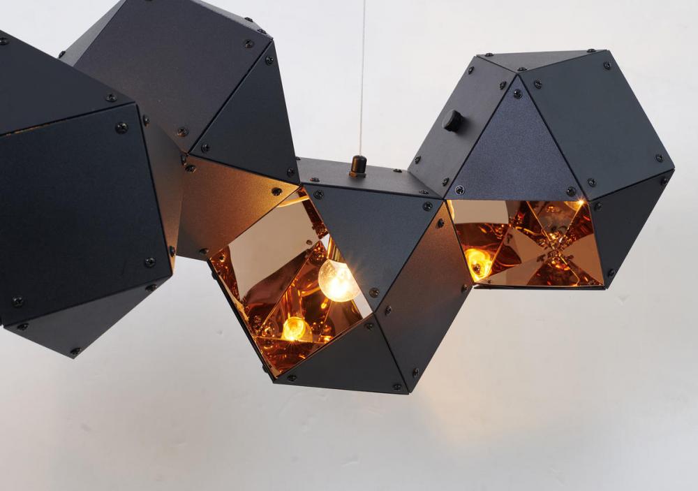 BLACK GEOMETRIC BLOCK CHANDELIER WITH A REFLECTIVE COPPER INTERIOR
