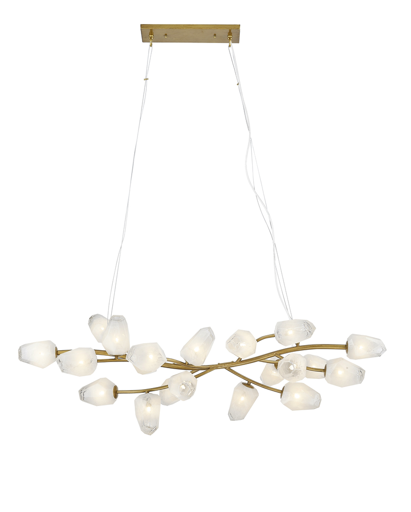 This chandelier is a gold branch frame chandelier
