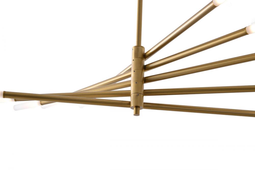 This exquisite chandelier is in a gold finish. The frame is made out of iron, and it comes with frosted glass shades. The adjustable rod link makes this fixture suitable for most ceiling heights.