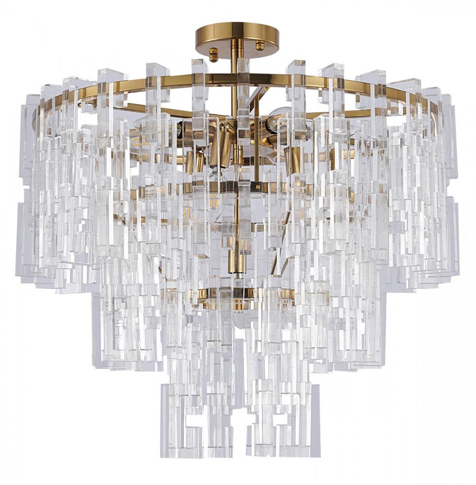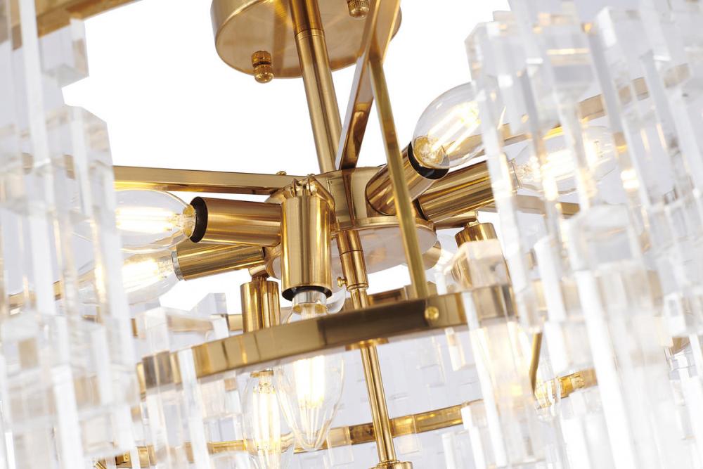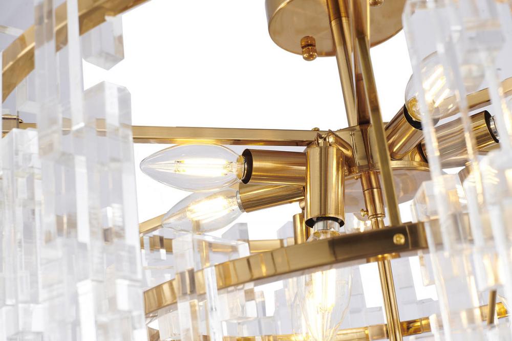 This exquisite chandelier is in an antique bronze finish. The frame is made out of metal, and it comes with clear acrylic hanging links. The rod link can be adjustable. You can create a timeless feel while using modern forms