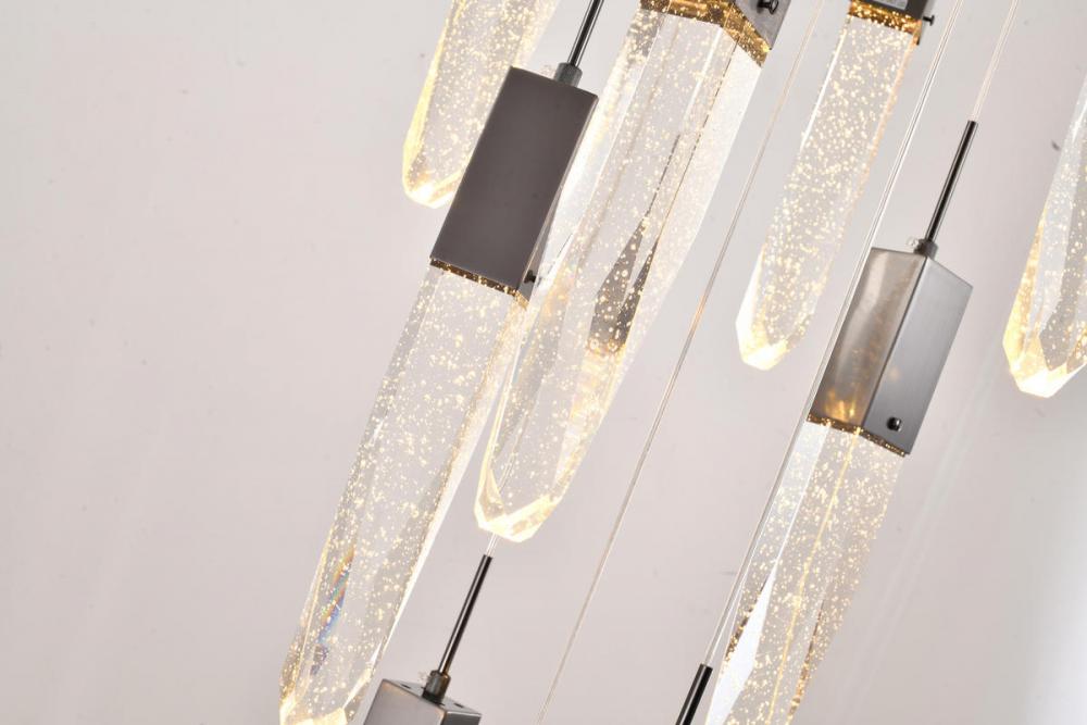 This exquisite chandelier is in a black finish. The frame is made out of metal, and it comes with hanging clear iceberg bubble crystals. You can create a timeless feel while using modern forms.