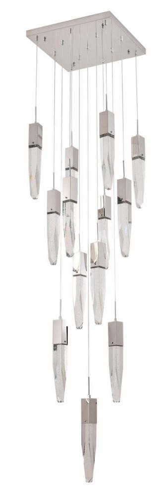 This chandelier has a chrome metal frame
