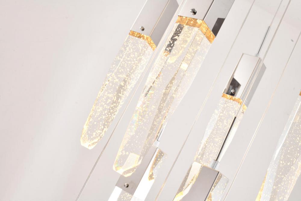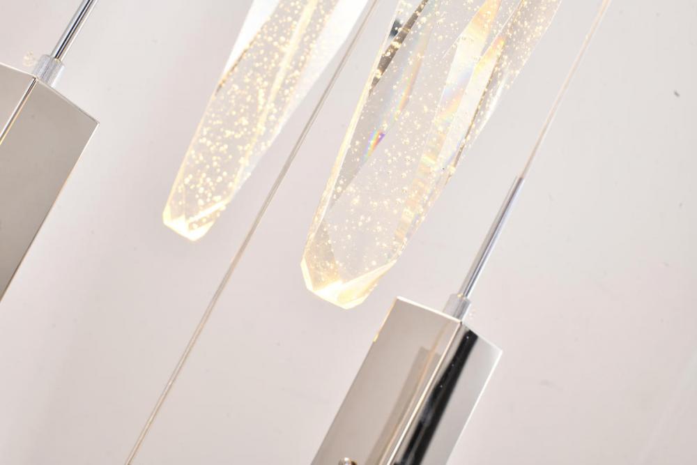 This exquisite chandelier is in a chrome finish. The frame is made out of metal, and it comes with hanging clear iceberg bubble crystals. You can create a timeless feel while using modern forms.