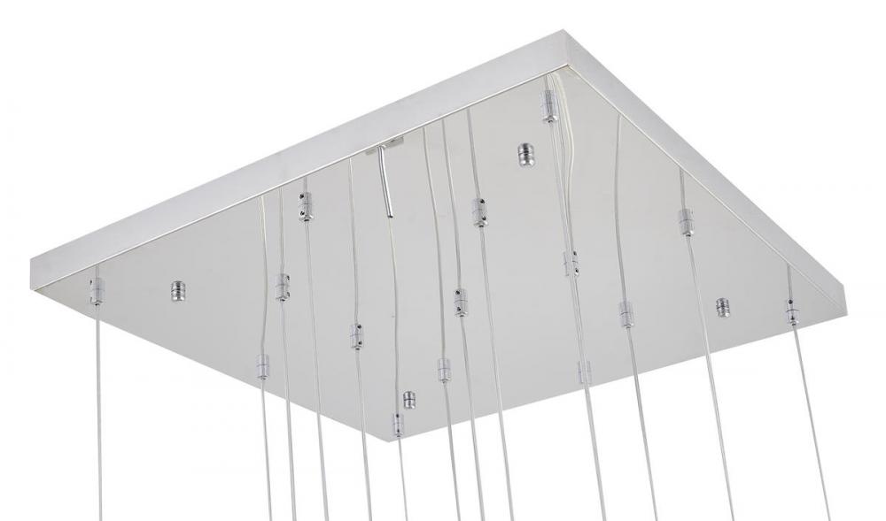 This exquisite chandelier is in a chrome finish. The frame is made out of metal, and it comes with hanging bubble iceberg crystals. The adjustable cord links make this fixture suitable for most ceiling heights.