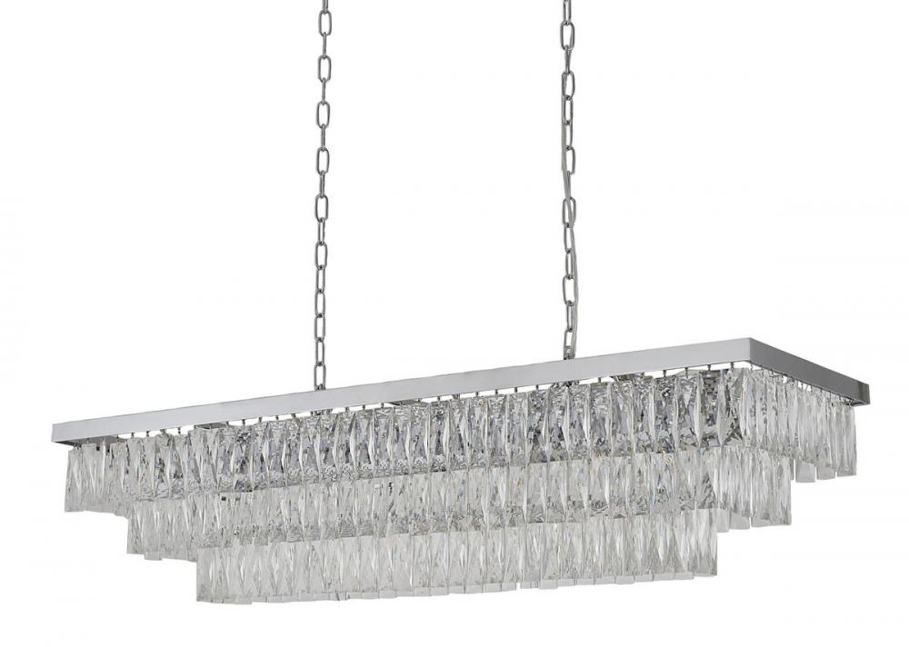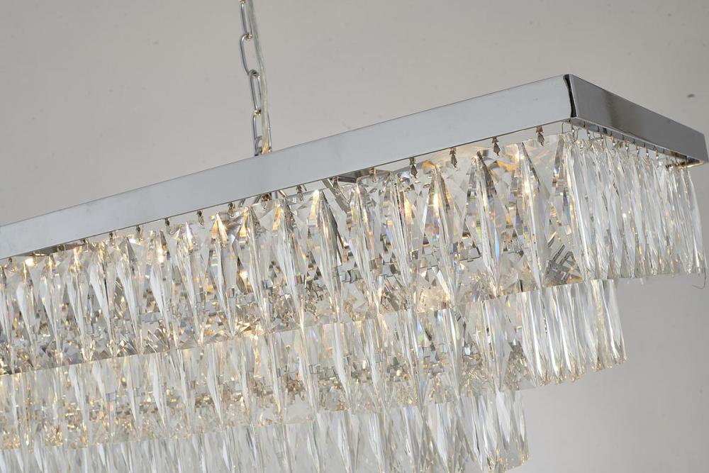 This three-tier exquisite chandelier is in a chrome finish. The frame is made out of metal, and it comes with clear hanging crystals. The chain link can be adjustable, and you can create a timeless feel while using modern forms