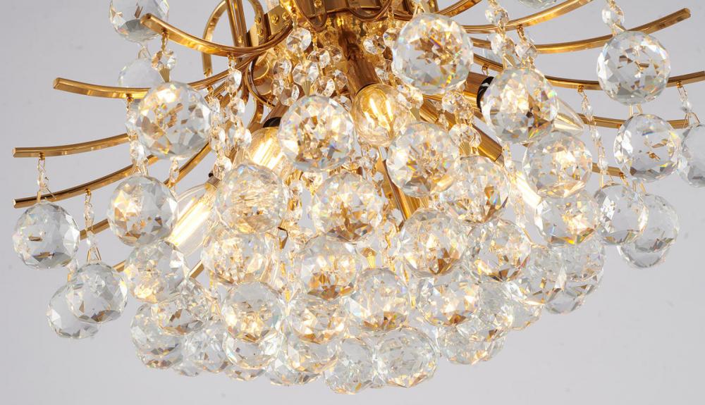 This exquisite chandelier is in a stain brass finish. The frame is made out of metal, and it comes with clear hanging crystals. The adjustable chain link makes this fixture suitable for most ceiling heights.