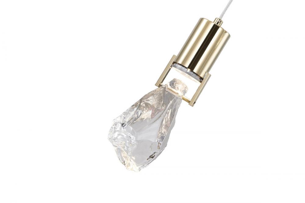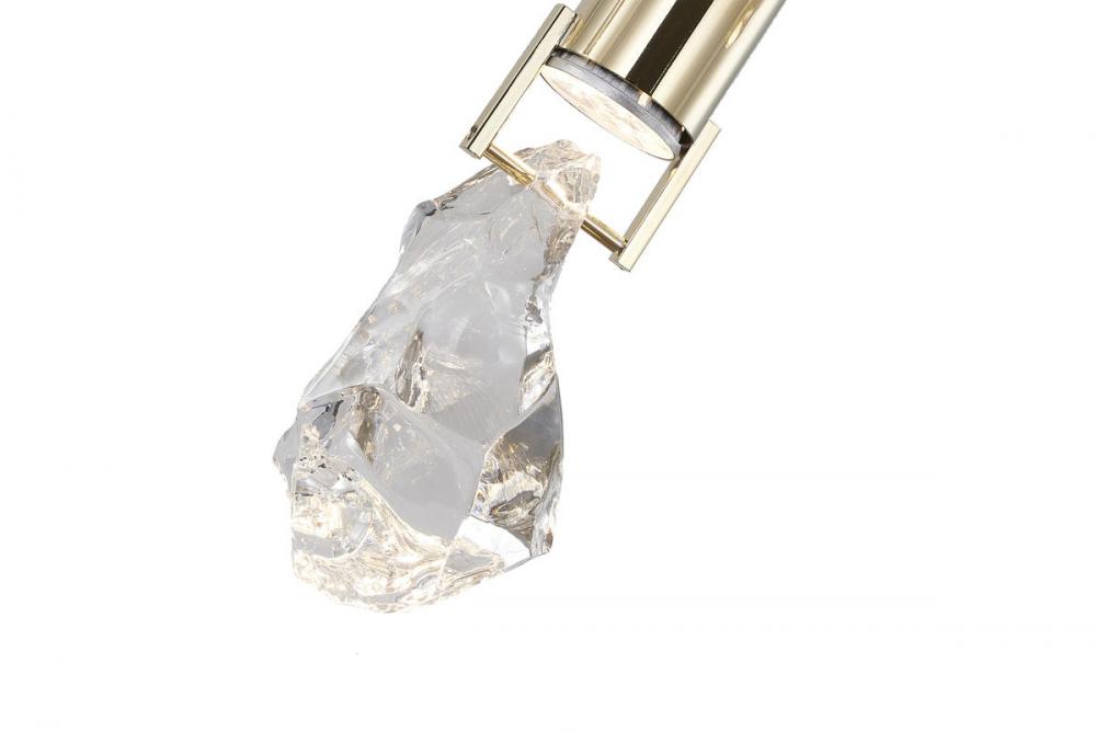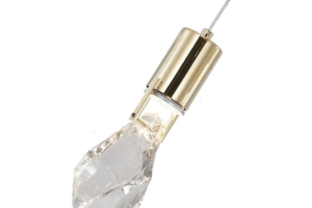 This exquisite chandelier in a brushed gold finish. The frame is made out of stainless steel, and it comes with clear crystal stone pendants. The adjustable cord links make this fixture suitable for most ceiling heights.
