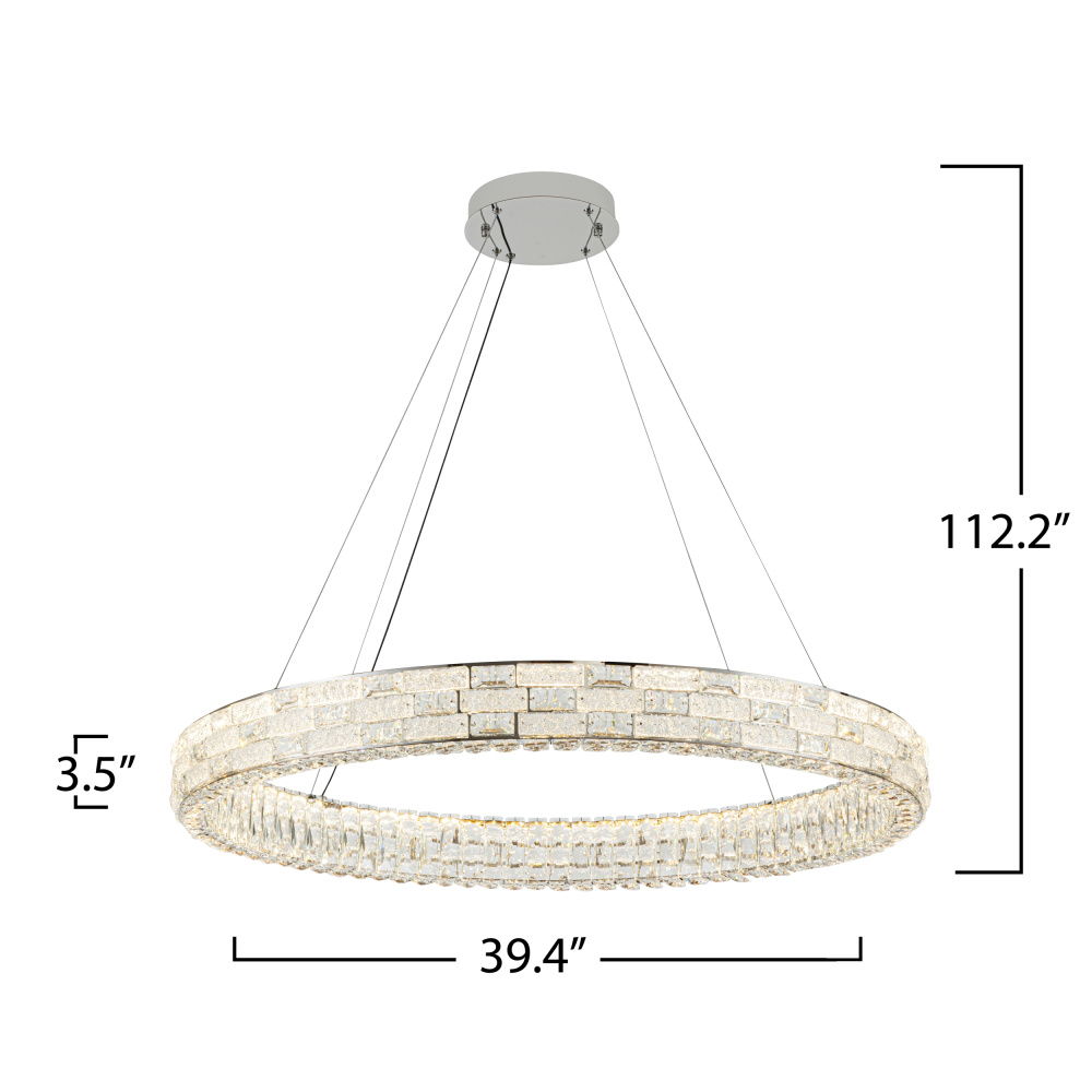Glistening like a crown of starlight, this LED crystal chandelier from the “Elegance” collection offers a breathtaking harmony of luxury and functionality. Its polished nickel frame embraces a dazzling array of crystals, while the 3CCT switch allows you to tailor the ambiance with warm, neutral, or cool light (3K, 4K, 5K). Suspended gracefully on aircraft-type cables with an intuitive “push-pin” system, it promises both beauty and effortless adjustment for any setting.