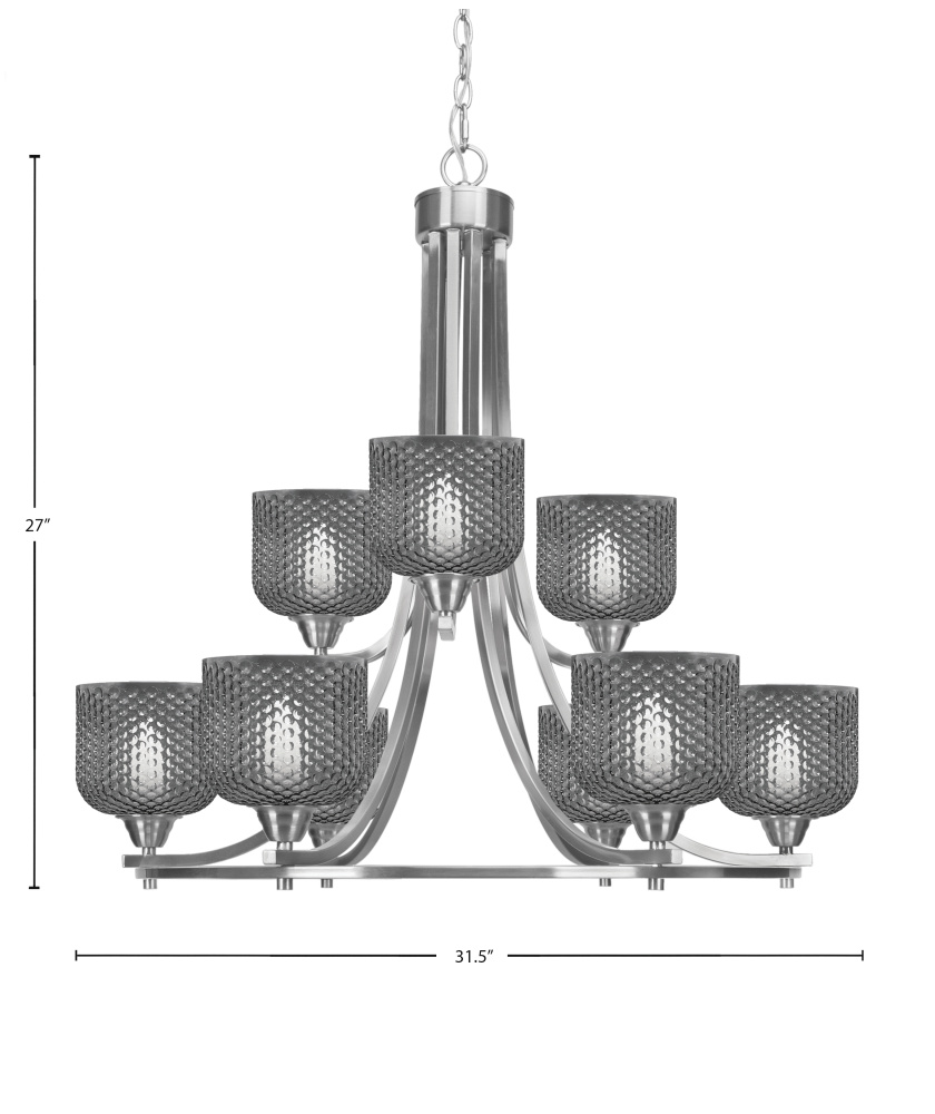 Paramount 9 Light Uplight Chandelier Shown In Brushed Nickel Finish With 6 Smoke Textured Glass