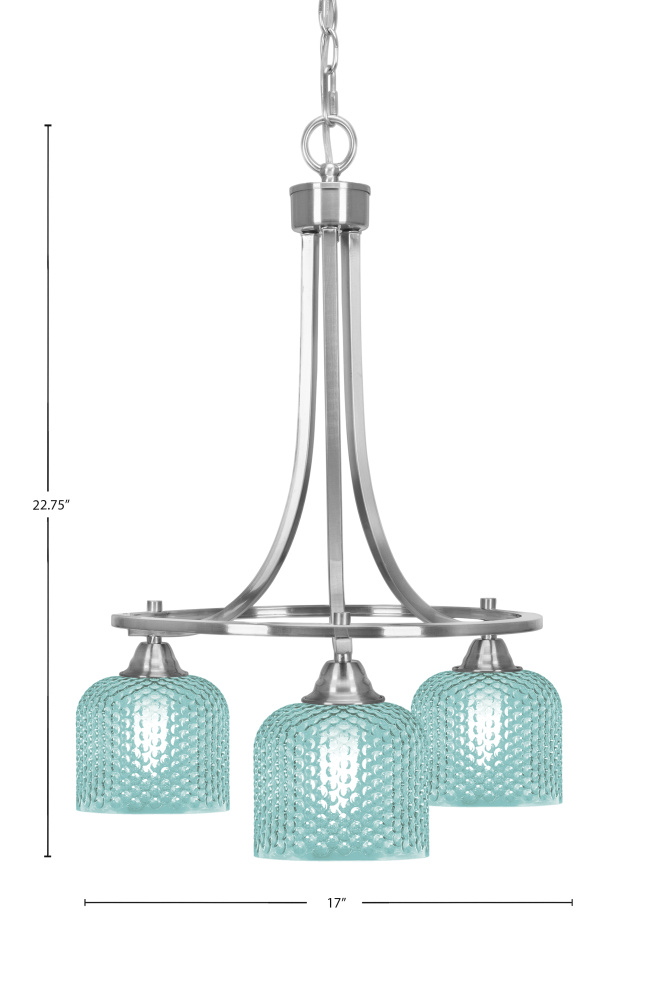 Paramount 3 Light Downlight Chandelier Shown In Brushed Nickel Finish With 6 Turquoise Textured Glass