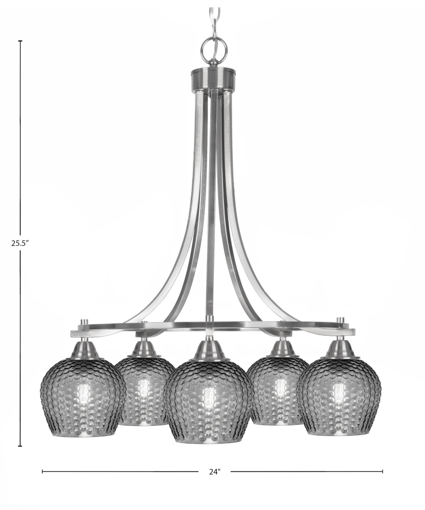 Paramount 5 Light Downlight Chandelier Shown In Brushed Nickel Finish With 6 Smoke Textured Glass