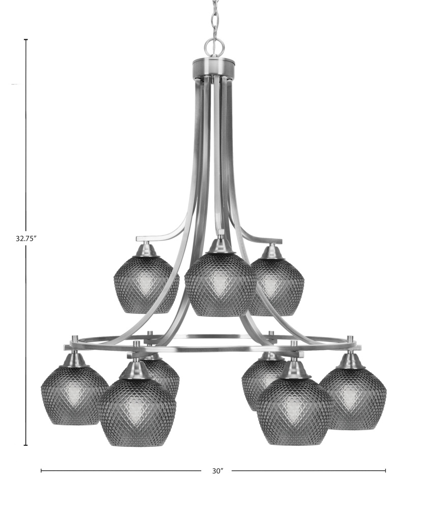 Paramount 9 Light Downlight Chandelier Shown In Brushed Nickel Finish With 6 Smoke Textured Glass
