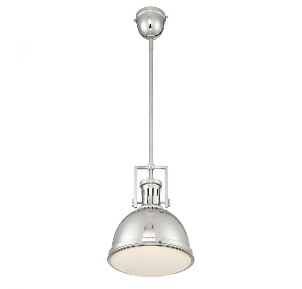 The Savoy House Chival pendant is a great example of industrial-chic style, featuring vintage details and an understated, practical design finished in polished nickel. White opal etched glass just adds to the charm and one 60W standard size bulb provides plenty of illumination. At 11" wide and 17" high with an adjustable hanging height of up to 45.5", it is terrific to install alone, in pairs or groups.