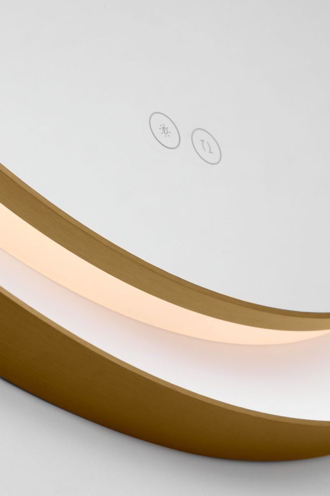 The Chopin 24 Round Mirror by Kate Spade distills the collection’s mid-century inspiration into a compact, circular form. Integrated LED lighting outlines the mirror With a soft, ambient glow, while selectable color temperatures offer tailored illumination. Ideal for powder rooms, hallways, bedrooms, or small vanities, this mirror brings clarity and character to intimate spaces—where thoughtful design meets everyday functionality.