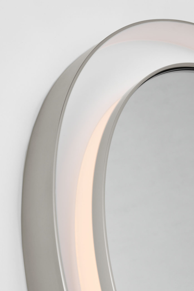 The Chopin 24 Round Mirror by Kate Spade distills the collection’s mid-century inspiration into a compact, circular form. Integrated LED lighting outlines the mirror With a soft, ambient glow, while selectable color temperatures offer tailored illumination. Ideal for powder rooms, hallways, bedrooms, or small vanities, this mirror brings clarity and character to intimate spaces—where thoughtful design meets everyday functionality.