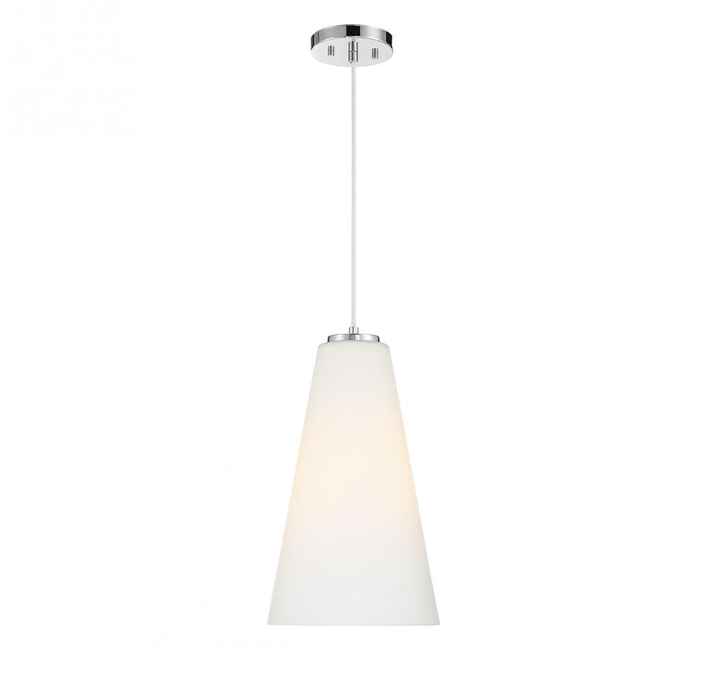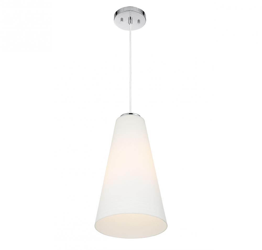 The elegantly elongated white glass shade steals the show in the Christos 1-light pendant. Paired with a chrome finish, it creates a great look for any space. Because this is a cord-hung pendant, you can get the perfect hanging height to suit your needs, too. Christos is 10" in width and has an adjustable height ranging from 17.5" to 137.5". It uses one standard size bulb of up to 60 watts (bulb not included).