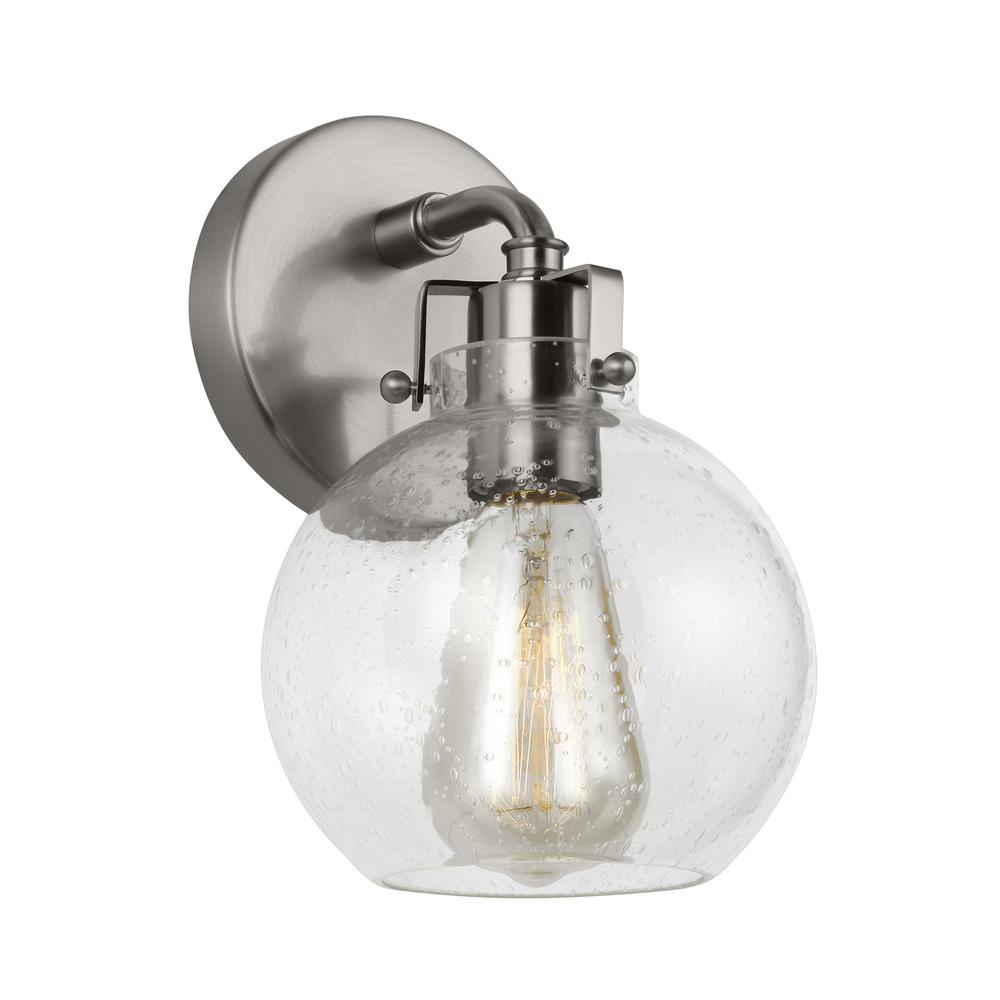 Clara features Clear Seeded glass shades that subtly diffuse the lamping while allowing the exposed bulb to be a central design element of the fixture. Choose the look that is right for your space with four finish options: Burnished Brass, Chrome, Satin Nickel, Oil Rubbed Bronze or a two-toned finish of Textured Black with Chrome.