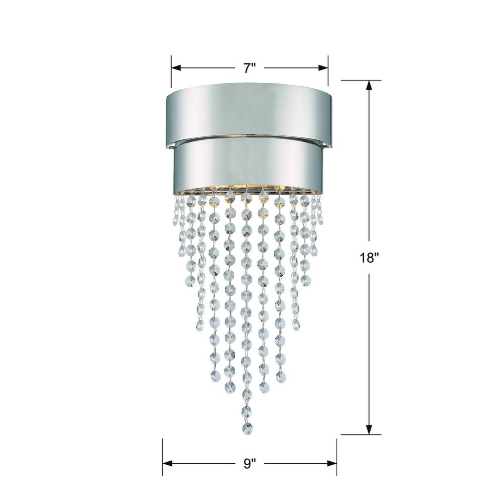 Cascading waterfall of faceted crystal strands are suspended from a polished nickel metal frame creating a dramatic statement in any room. The robust layering of crystals is a brilliant focal point for dressing up modern or contemporary interiors.