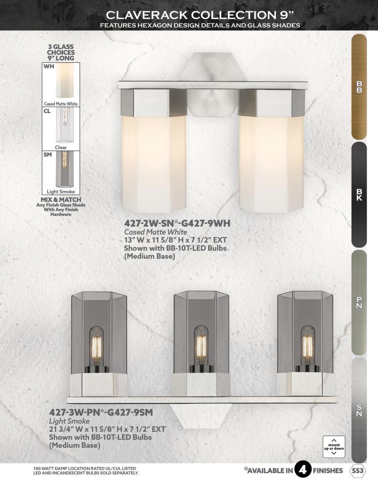 Geometric design is the star of the Claverack Collection. The hexagonal details of the metal frame is accentuated by the similarly shaped glass shades. Claverack offers a full line of fixtures to suit any project or space.