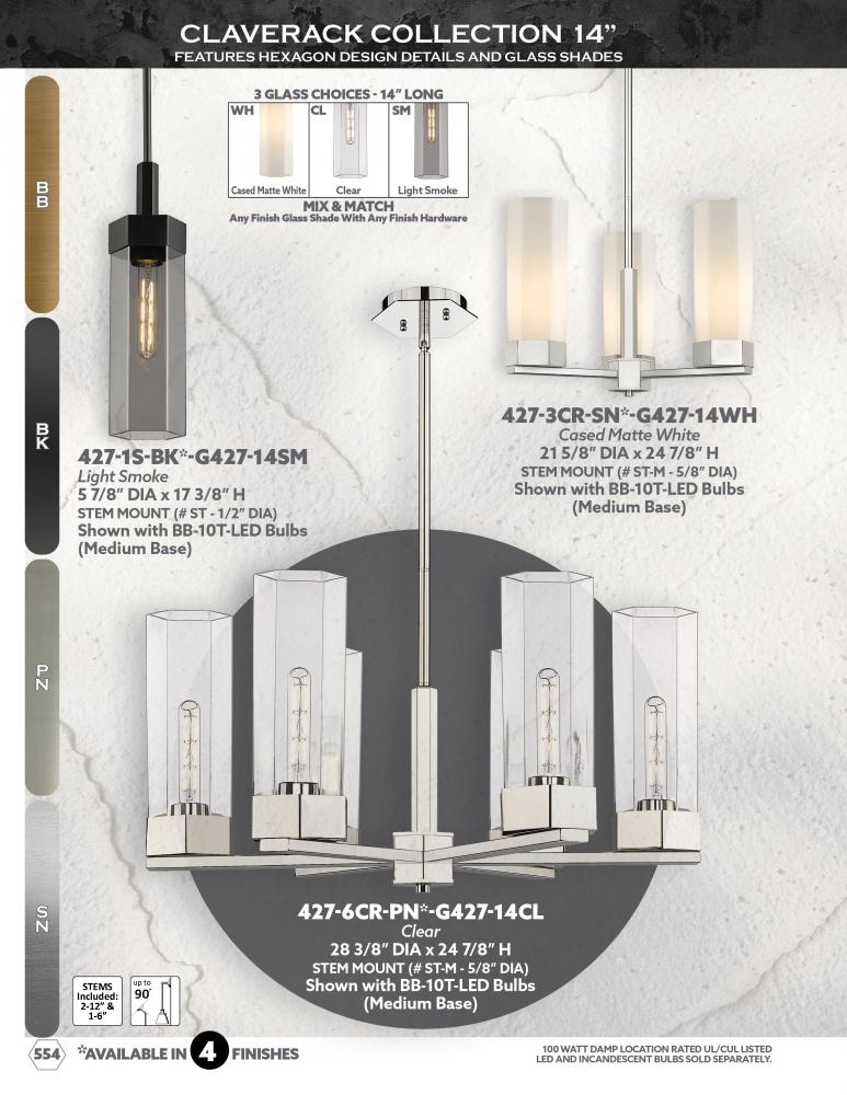Geometric design is the star of the Claverack Collection. The hexagonal details of the metal frame is accentuated by the similarly shaped glass shades. Claverack offers a full line of fixtures to suit any project or space.