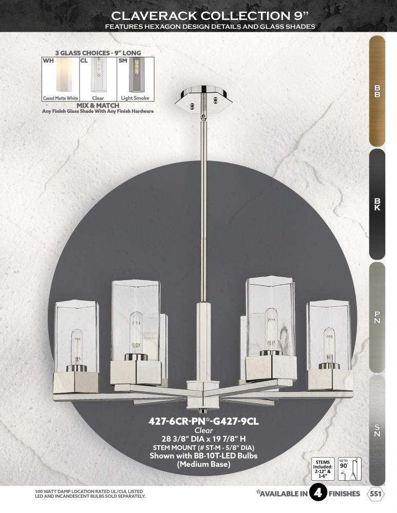 Geometric design is the star of the Claverack Collection. The hexagonal details of the metal frame is accentuated by the similarly shaped glass shades. Claverack offers a full line of fixtures to suit any project or space.