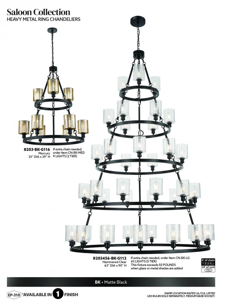Heavy Metal Ring Chandelier that can be used as a Bare Bulb fixture or it can accommodate our Ballston Collection Glass.