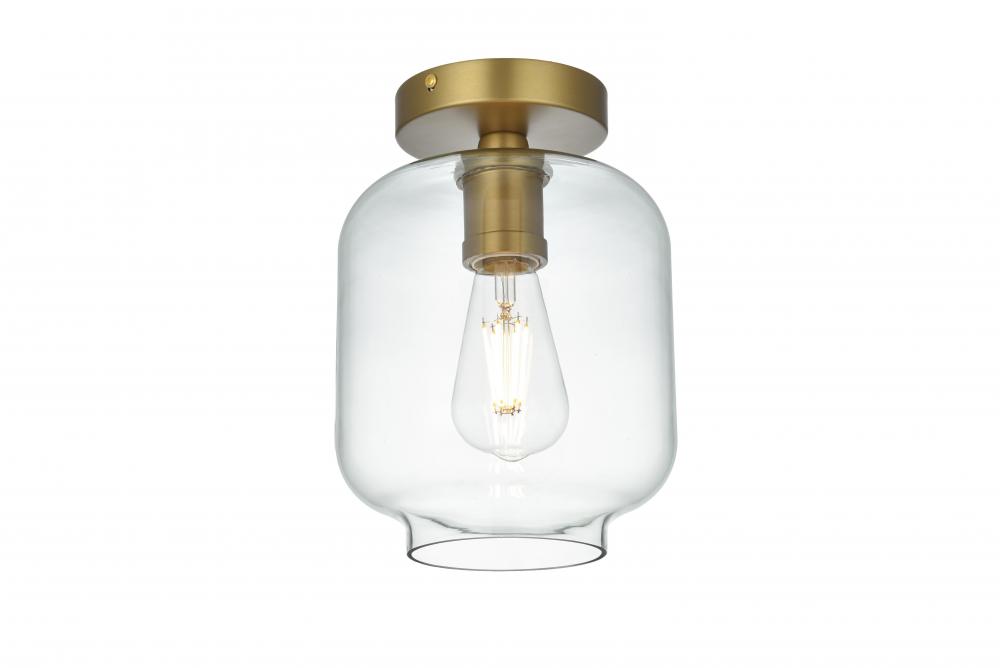 The Collier Collection of lights will be sure to have your guests admire your modern sense of style with the beautiful simplicity of its shape and form. This flush mount allows brilliant illumination to shine and radiate, allowing for your room to be center stage, and despite its minimalism, its design is far from boring--available in a satin gold, brass, chrome, or black finish, with a clear cylinder glass shade. The sleek organic curves of the mount and the cylinder that encapsulates the bulb will enhance your bathroom, foyer, or hallways, allowing for you to always live a chic and fashionable lifestyle, no matter where you are (light bulbs not included).