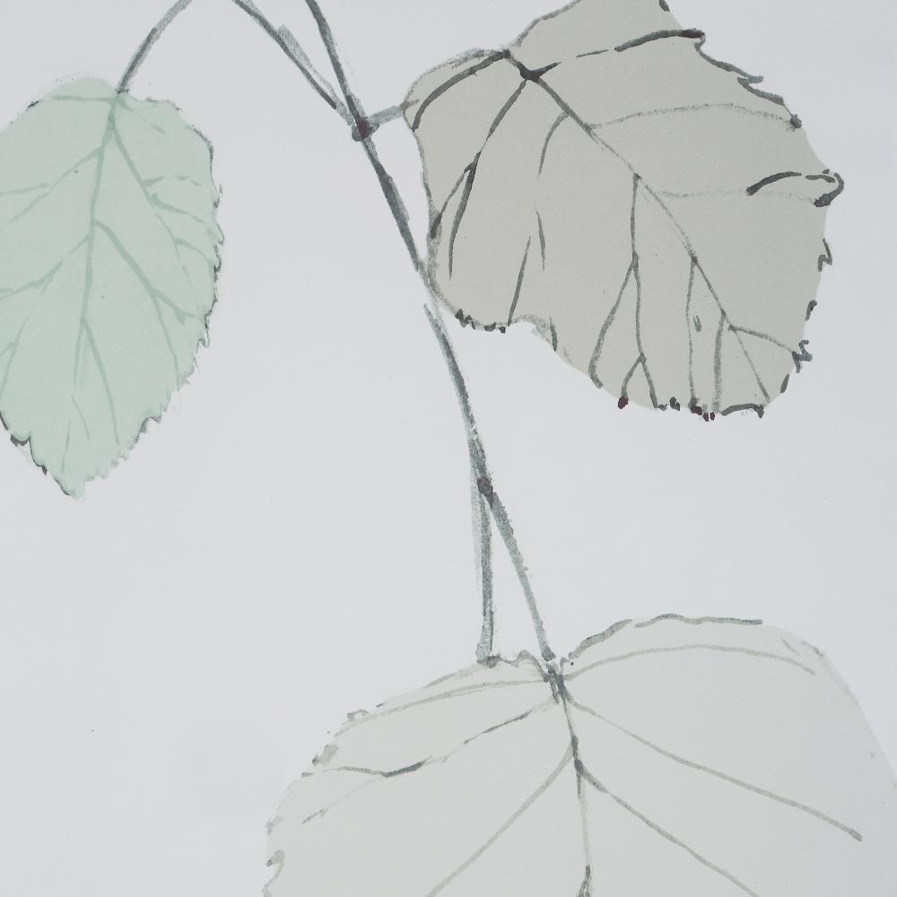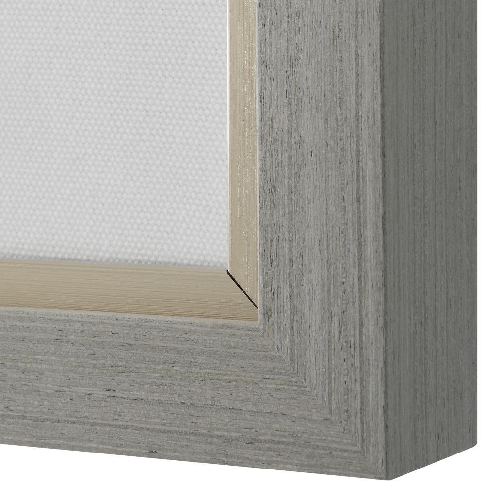 This versatile pair depicts delicate botanicals in soothing sage, navy, and neutral tones. Each print is under glass and accentuated by an off-white linen mat and gray wood tone frame with a petite champagne liner. Artwork by Flora B.