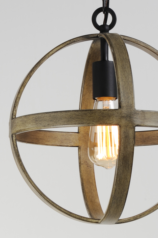 The sphere has become one the most popular styles in lighting decor today. Our latest entry to this category is constructed of heavy channel metal finished in either Barn Wood or Antique Pecan both with Black accents. Now you can enjoy the beauty of wood w