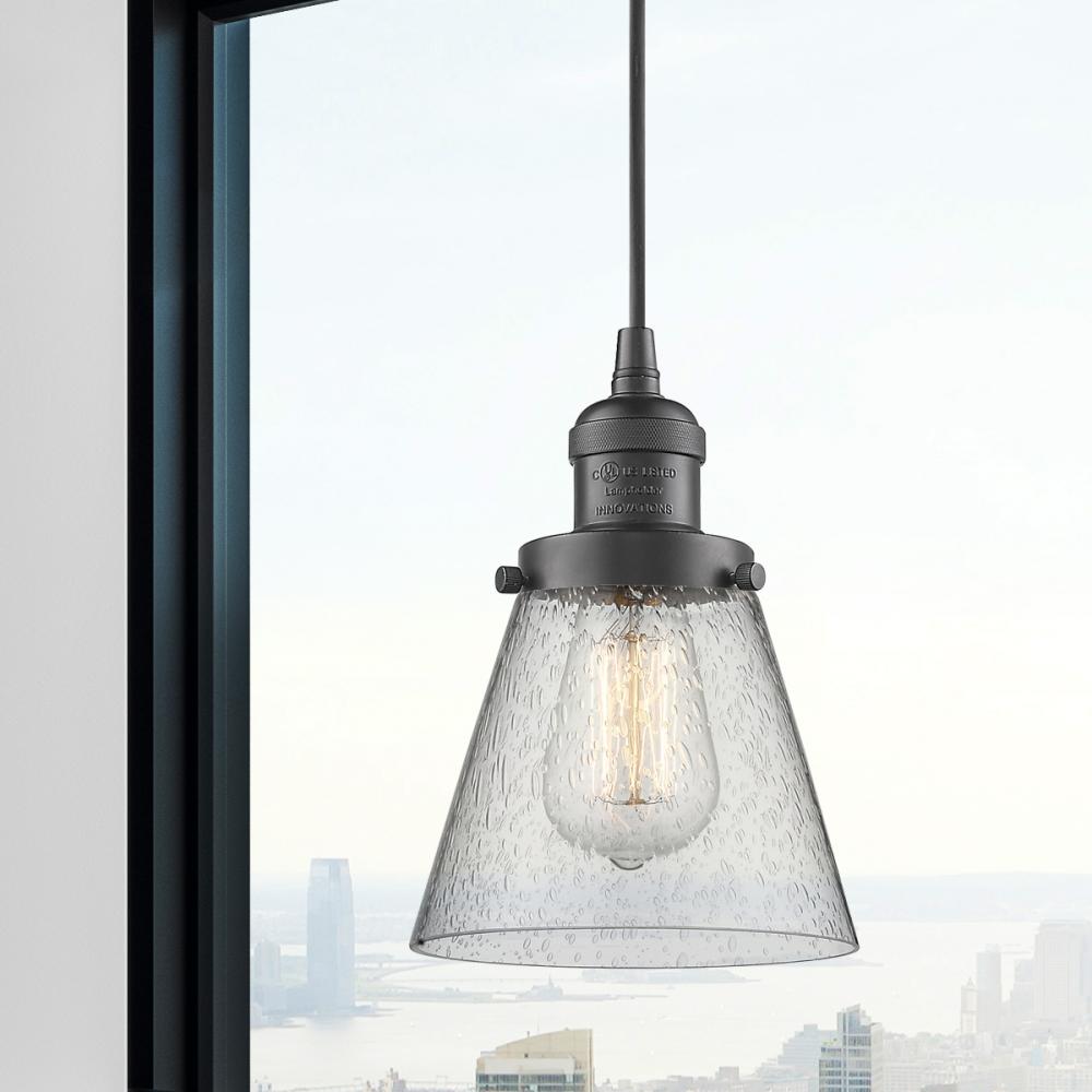 Cone - 1 Light - 6 inch - Oil Rubbed Bronze - Seedy Shade - Cord hung - Mini Pendant