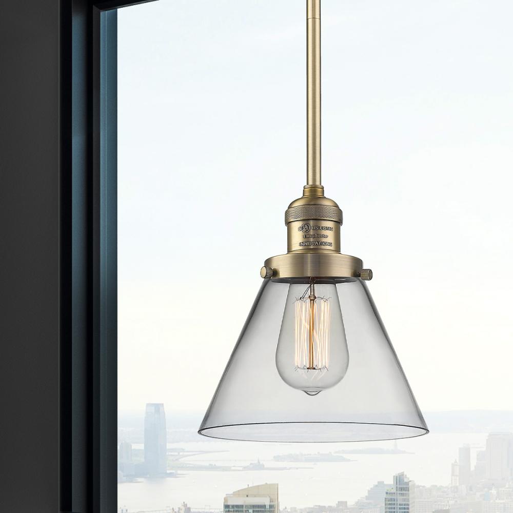 The Franklin Restoration collection is comprised of heavy cast components that give the fixture a heavy Industrial look and feel. We offer the fixture in 10 finishes with a Bare Bulb look or with over 100 possible metal and glass shade options that can cha