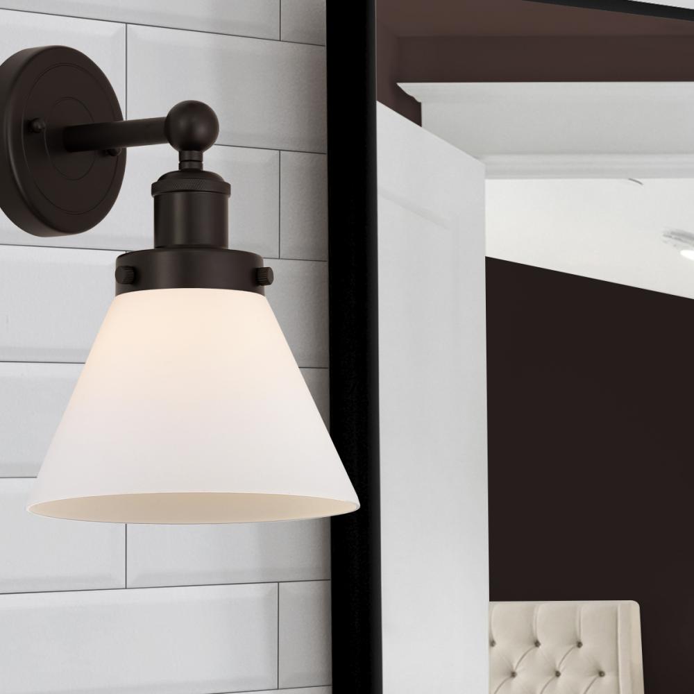 Cone - 1 Light - 8 inch - Oil Rubbed Bronze - Matte White Shade - Sconce