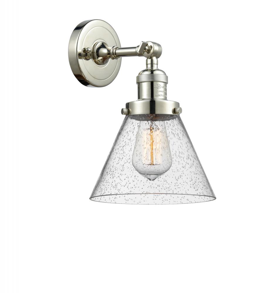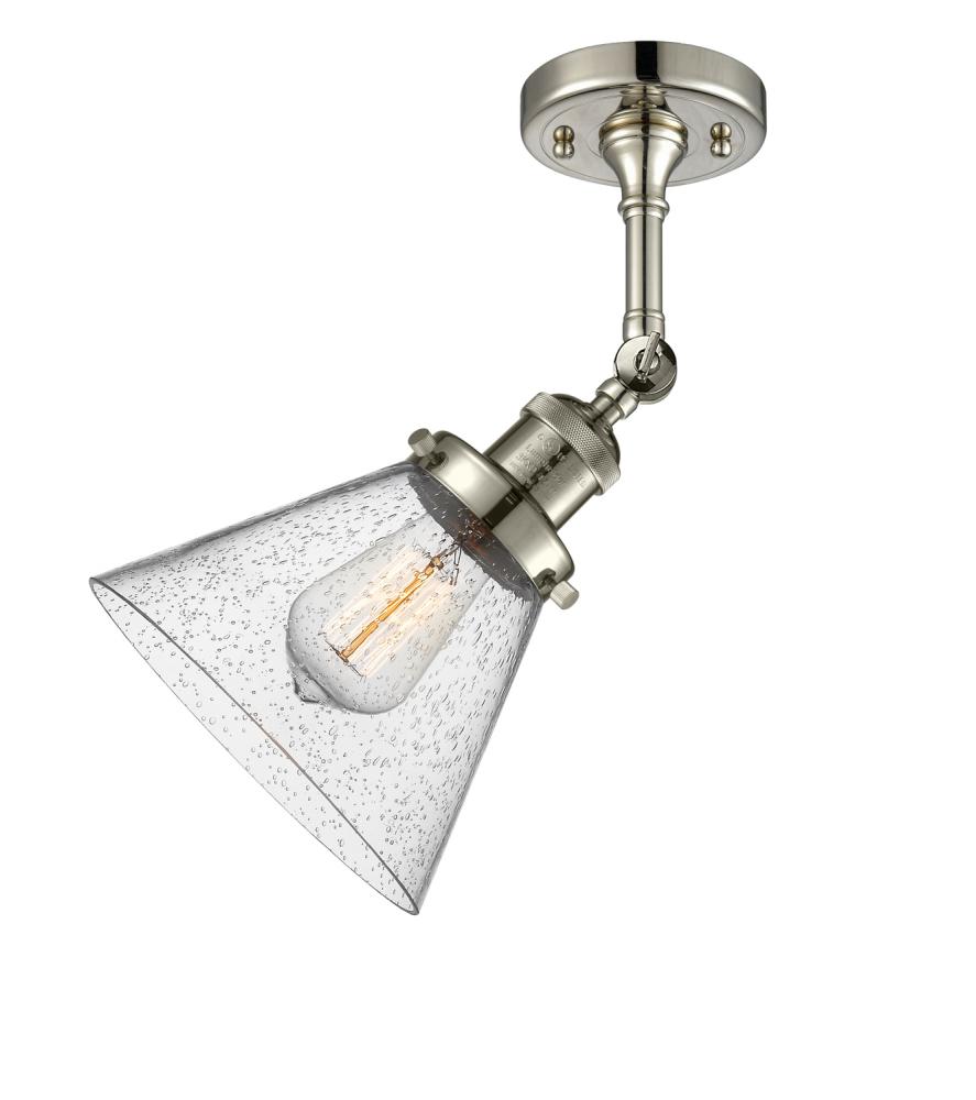 Cone - 1 Light - 8 inch - Polished Nickel - Seedy Shade - Adjustable Semi-Flush Mount