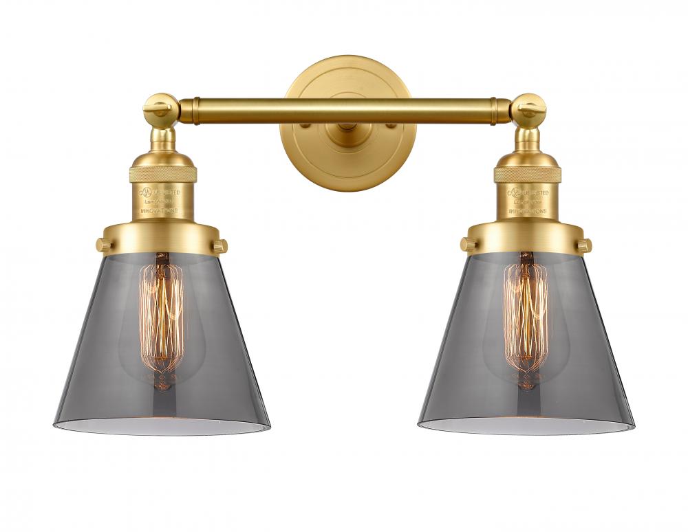 Cone - 2 Light - 16 inch - Satin Gold - Light Smoke Shade - Adjustable Bath Vanity Light