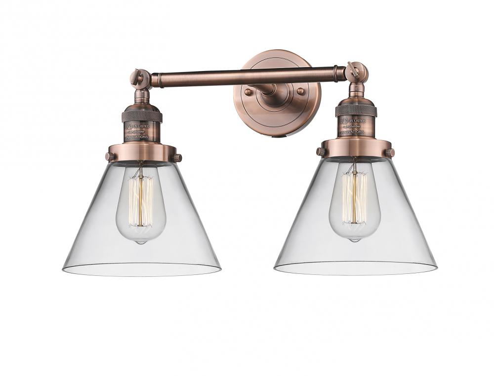 Cone - 2 Light - 8 inch - Antique Copper - Clear Shade - Adjustable Bath Vanity Light