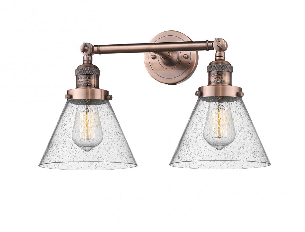 Cone - 2 Light - 8 inch - Antique Copper - Seedy Shade - Adjustable Bath Vanity Light