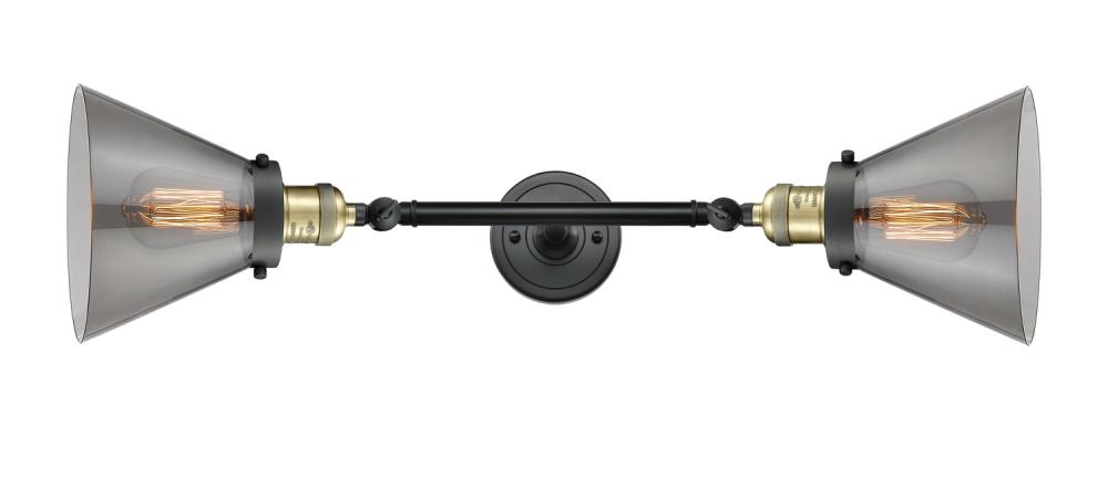 Cone - 2 Light - 8 inch - Black Antique Brass - Light Smoke Shade - Adjustable Bath Vanity Light